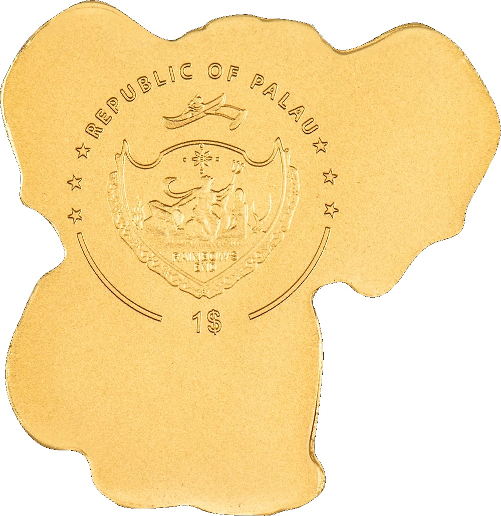1 Доллар Палау, монеты острова Палау пополнятся новым денежным знаком, в обращение выйдет монета 1 доллар Слон, которая выходит в серии “Золото особых форм”.