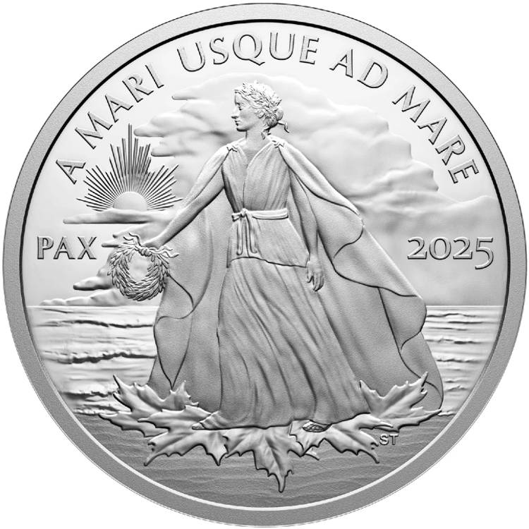 Канада доллар, в 2025 году Королевский монетный двор Канады отчеканил памятную монету 1 доллар Доллар Мира, которая выйдет в одноименной серии.