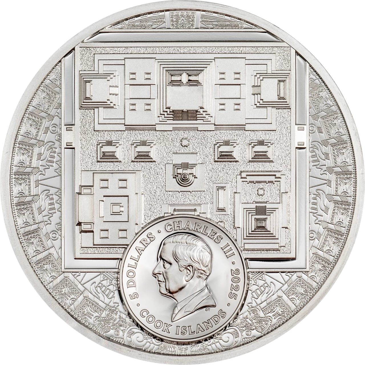 Монета 5 долларов Острова Кука, осенью 2025 года New Zealand Mint отчеканил для острова Острова Кука серебряную монету 5 долларов Новой Зеландии – Империя ацтеков.