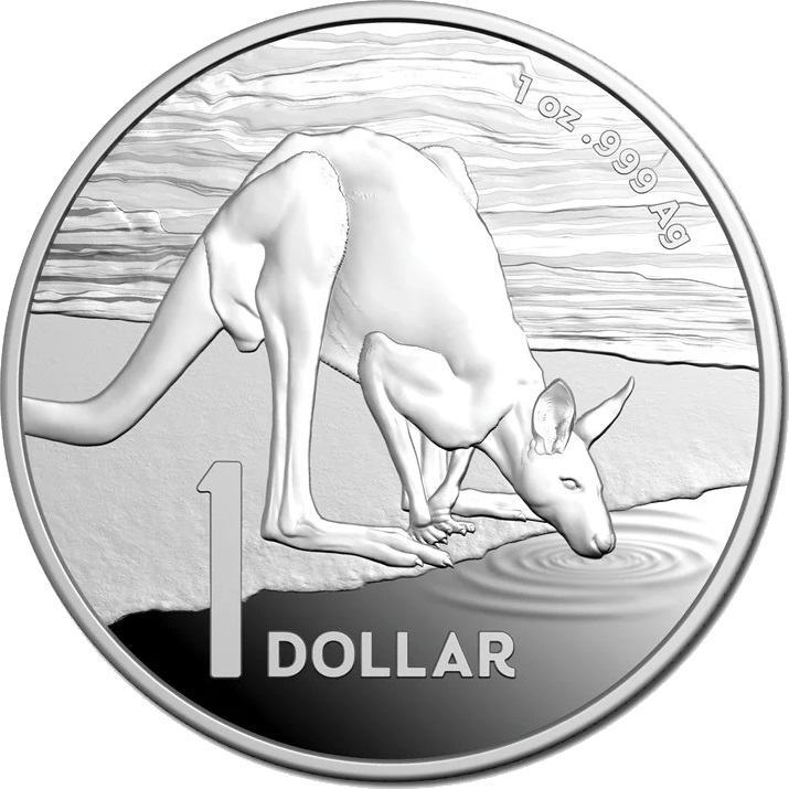 Один доллар Австралия, в конце 2024 года Королевский австралийский монетный двор в Австралии (Royal Australian Mint) по поручению Резервного банка Австралии (Reserve Bank of Australia) выпускает в обращение памятную инвестиционную серебряную монету 1 доллар Австралийский Кенгуру.