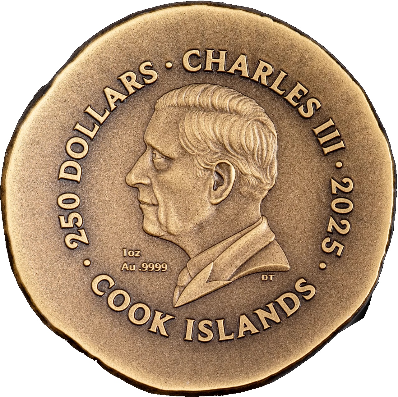 Острова Кука 250 долларов, в 2025 года монеты Острова Кука пополнились новым инвестиционным знаком, в обращение поступила инвестиционная золотая монета 250 долларов Лев, которая выходит в серии “Нумизматические иконы”.