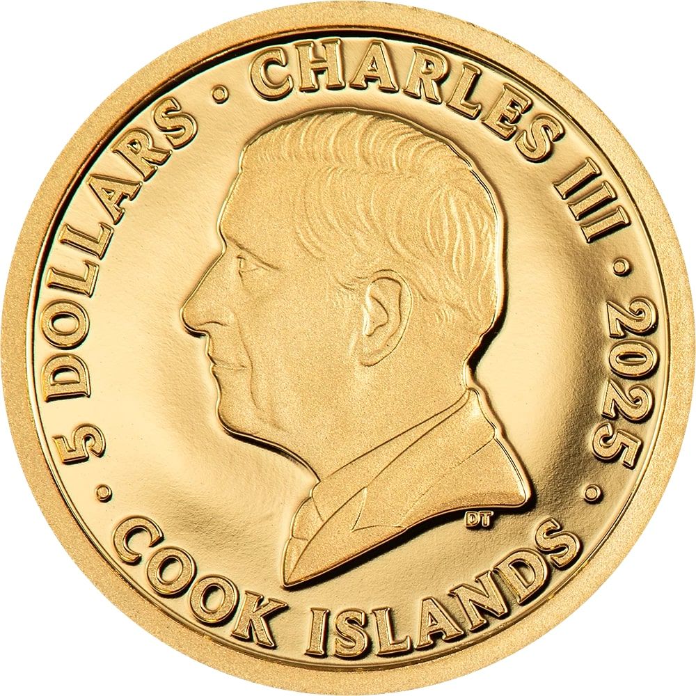 Пять долларов Острова Кука, осенью 2025 года New Zealand Mint отчеканил для острова Острова Кука золотую монету 5 долларов Новой Зеландии – Империя ацтеков.