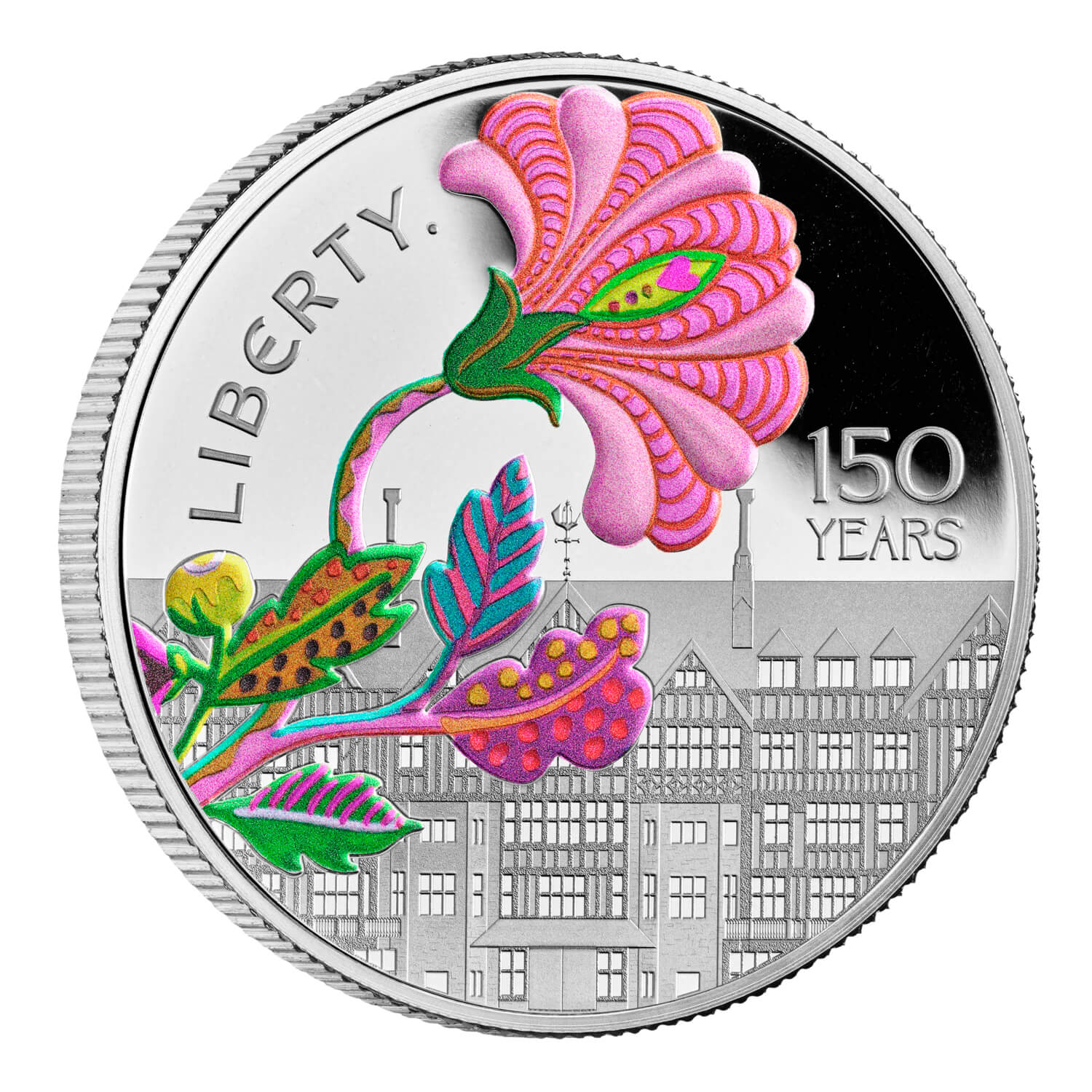 Дизайн монеты, созданный в студии Liberty Design, отдает дань уважения богатому наследию одного из самых знаковых и влиятельных домов моды Великобритании. В знак особого почтения к 150-летию на монете также представлены элементы из последней коллекции тканей Liberty, посвященной этому знаменательному событию, — переплетая прошлое и настоящее дизайнерского дома. Некоторые монеты также будут доступны в ярких цветах, воплощая смелые цвета, которыми славится Liberty, на металле.