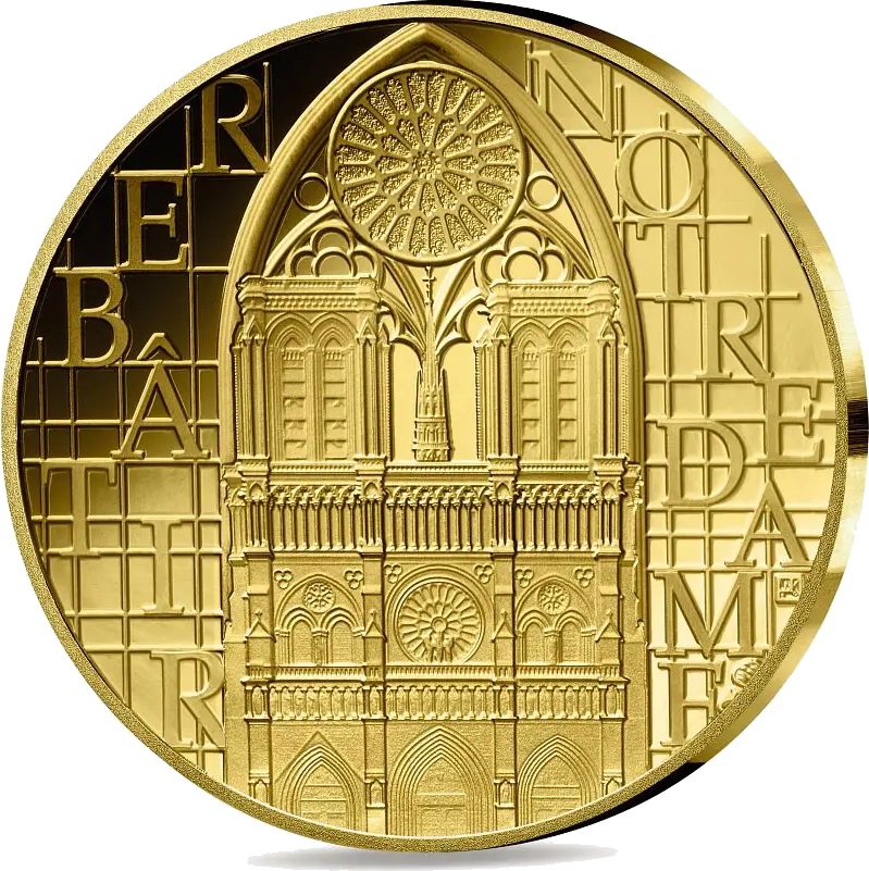 В 2024 году, по случаю открытия для публики собора Нотр-Дам де Пари после пяти лет реставрации, Monnaie de Paris объединяет усилия с этим шедевром готической архитектуры. Монеты этой коллекции посвящены восстановлению собора. Пересекающиеся линии вокруг фасада Нотр-Дама символизируют наличие строительных лесов, на которых покоится текст «Восстановление Нотр-Дама». Со времен Средневековья строители соборов были легендой ноу-хау, поскольку их мастерство формировало историю строительства и архитектуры. Благодаря этой коллекции устанавливается настоящий диалог между «нумизматической консерваторией» и «консерваторией наследия». Каждое учреждение приносит свою историю, свои профессии и свои традиции, происходившие на протяжении веков.