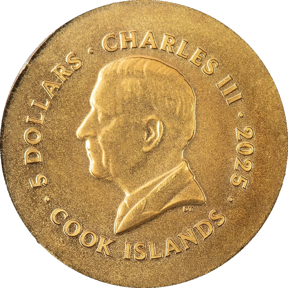 Золотые 5 долларов острова Кука, в 2025 года монеты острова Кука пополнились очередным денежным знаком. CIT отчеканил для островов Кука золотую монету 5 долларов Новой Зеландии – Лев.